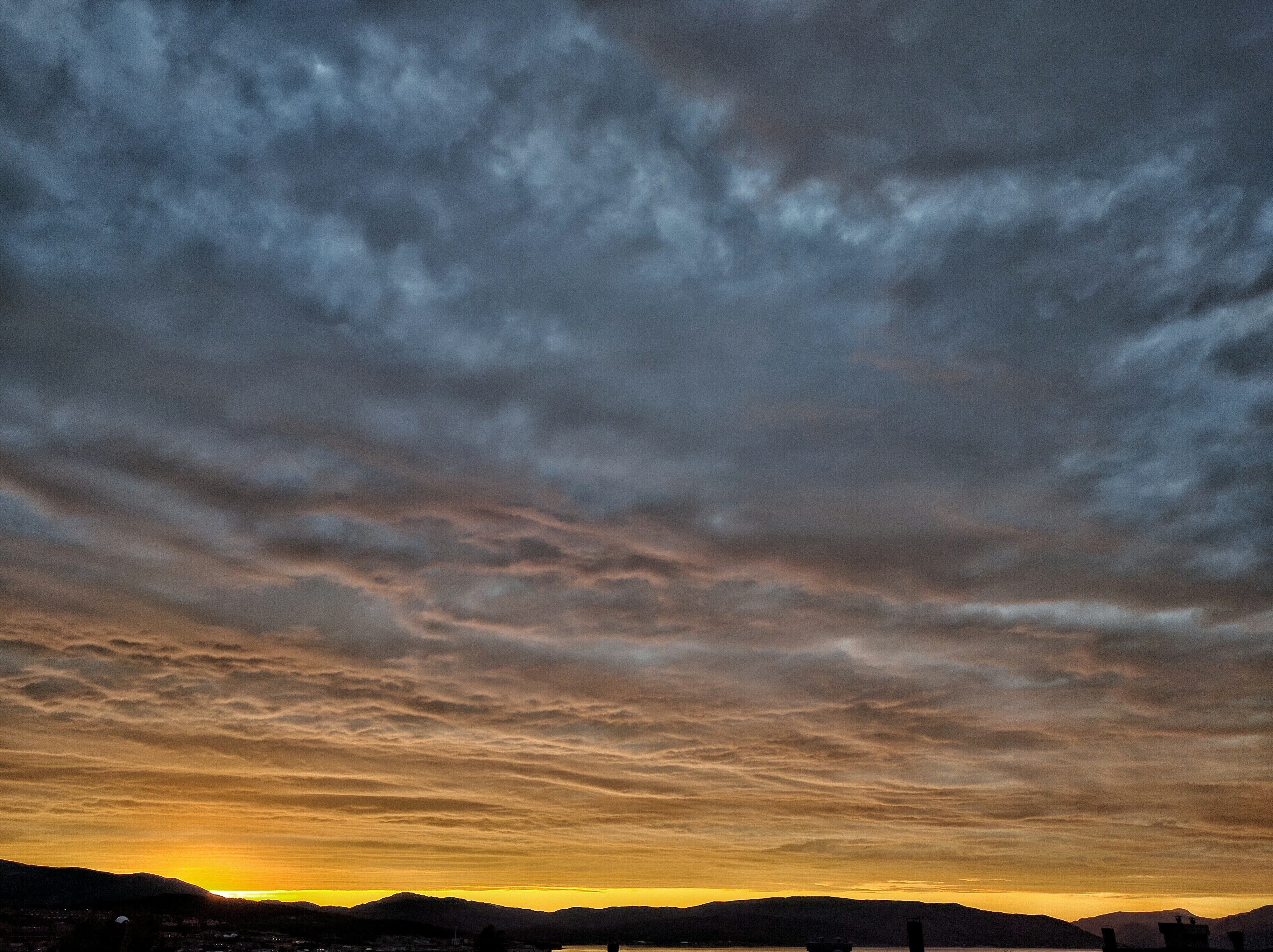 The weather can’t really decide, so a beautiful sunset and really dramatic skies is what we get… It looks cool though.